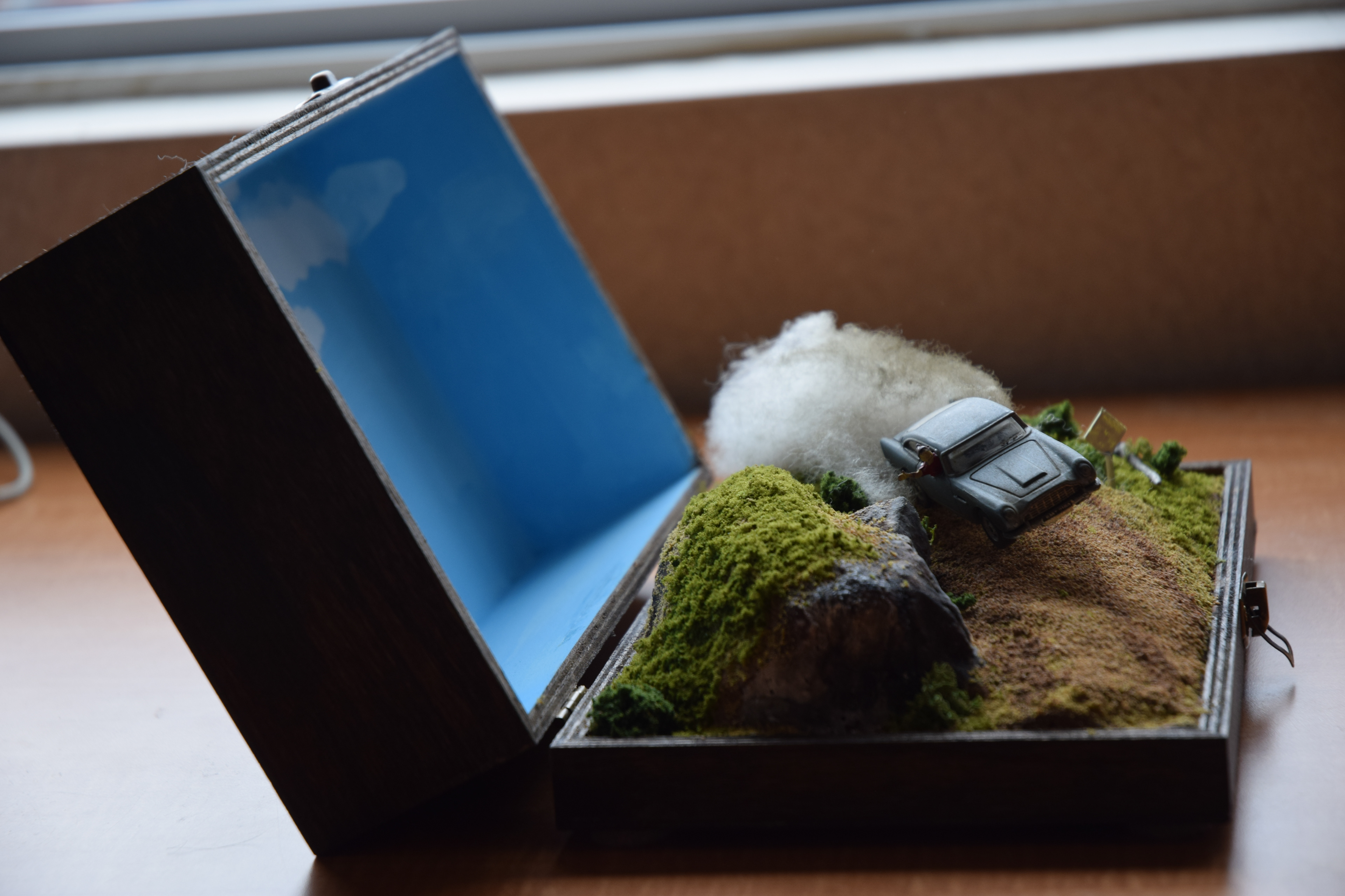 "Aston, Airborne" (2019) – 1:64 scale jewelry box diorama